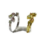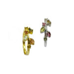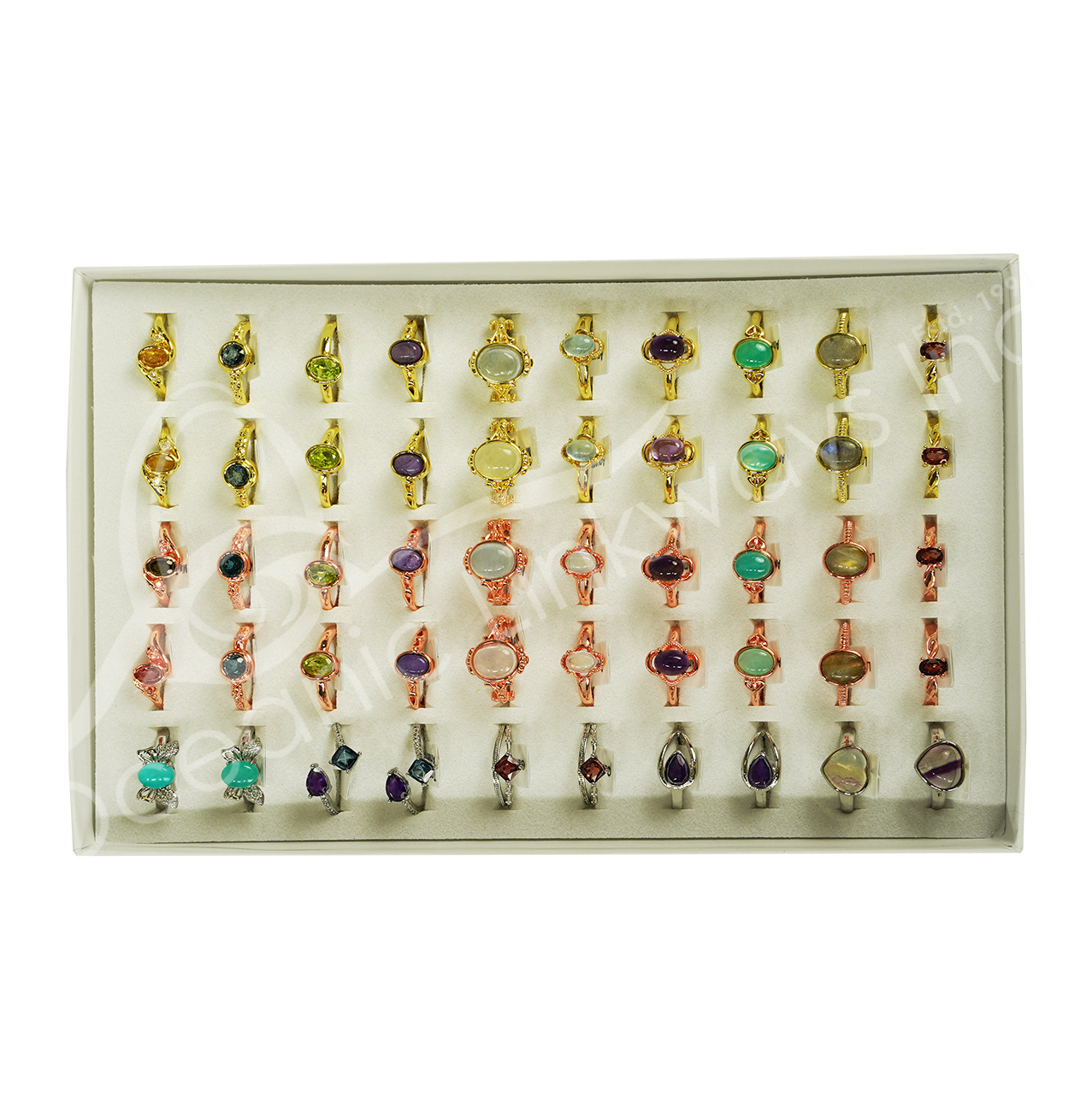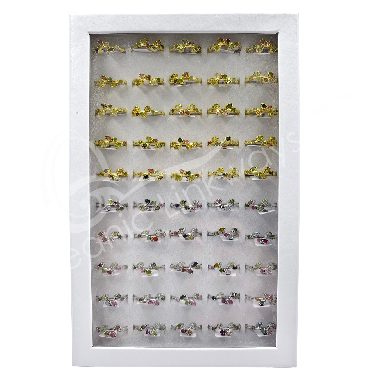 RING – BRASS ADJUSTABLE FACETED MIXED STONES WITH LEAVES (TRAY OF 50) 0.75″
