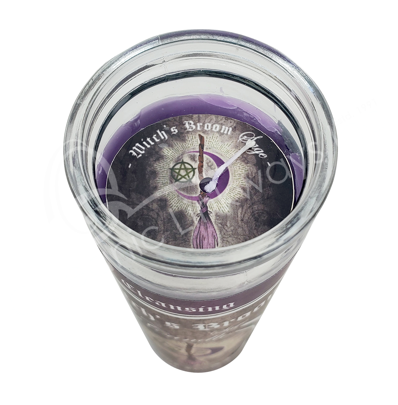 CANDLE – GLASS JAR SAGE/WITCH’S BROOM 8″H X 2.25″DIA.