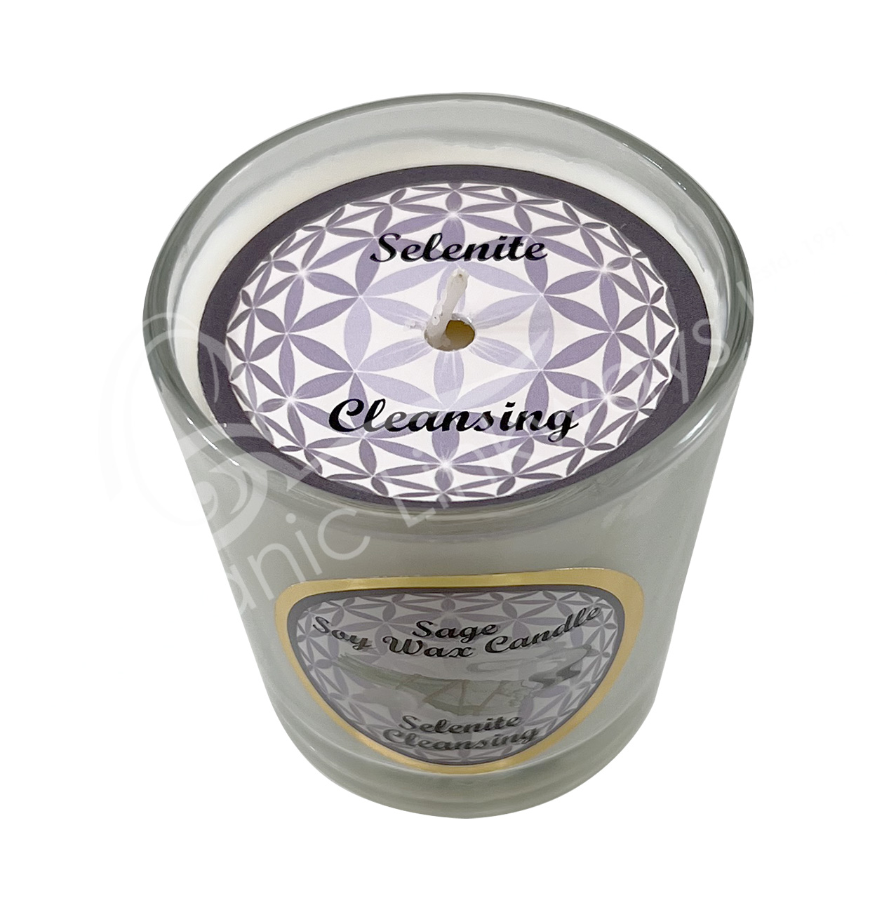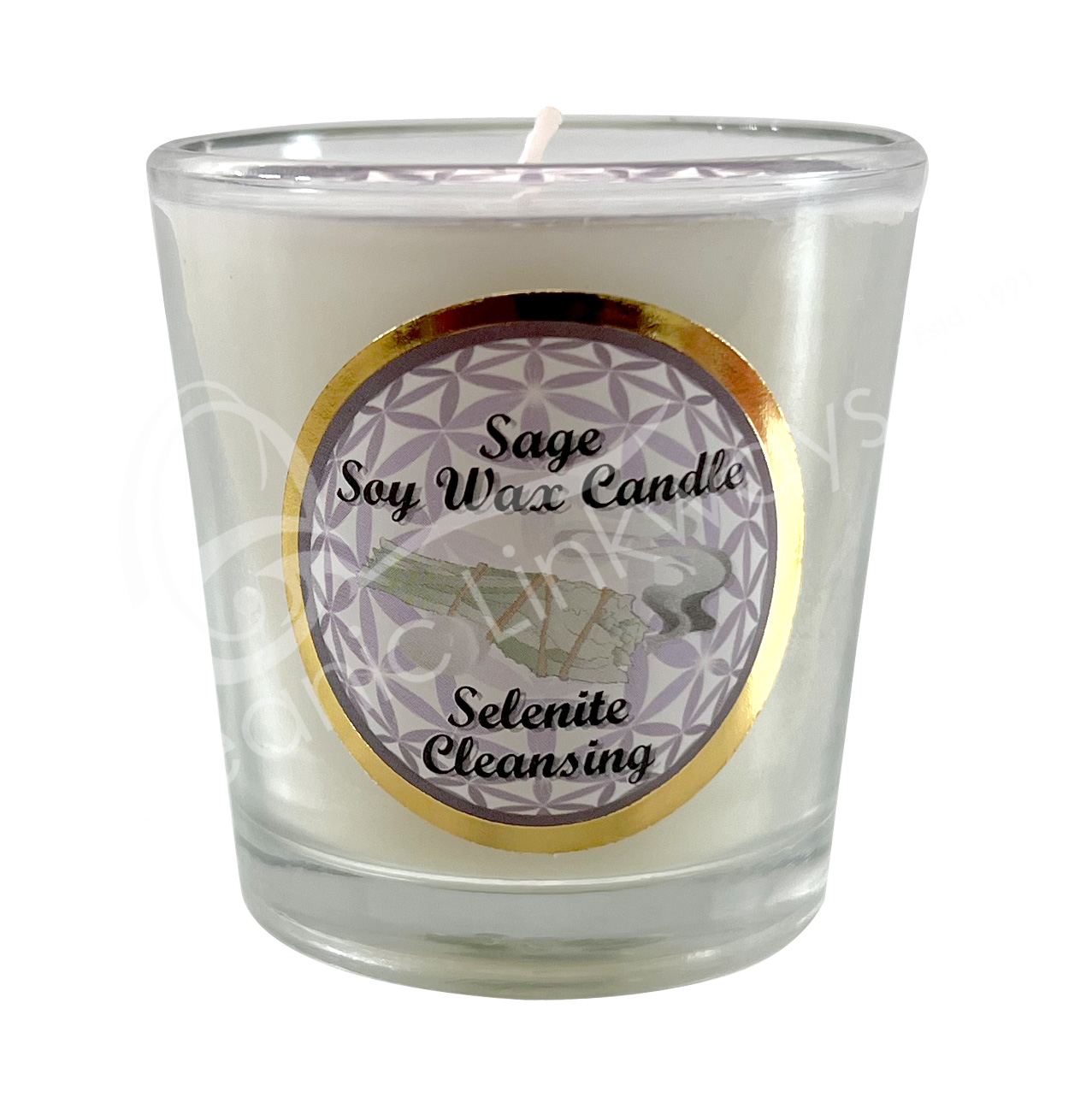 CANDLE VOTIVE – SOY WAX SAGE WITH SELENITE/CLEANSING (PK 6) 2.25-2.5″H X 2.25″DIA.