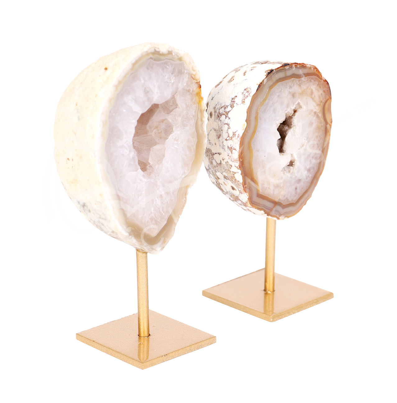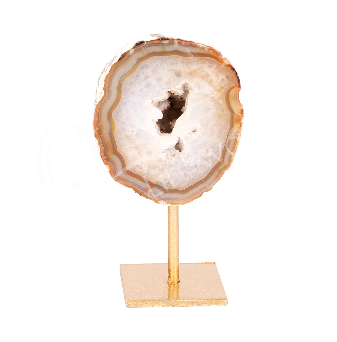 SPECIMEN – AGATE GEODE ON GOLD STAND