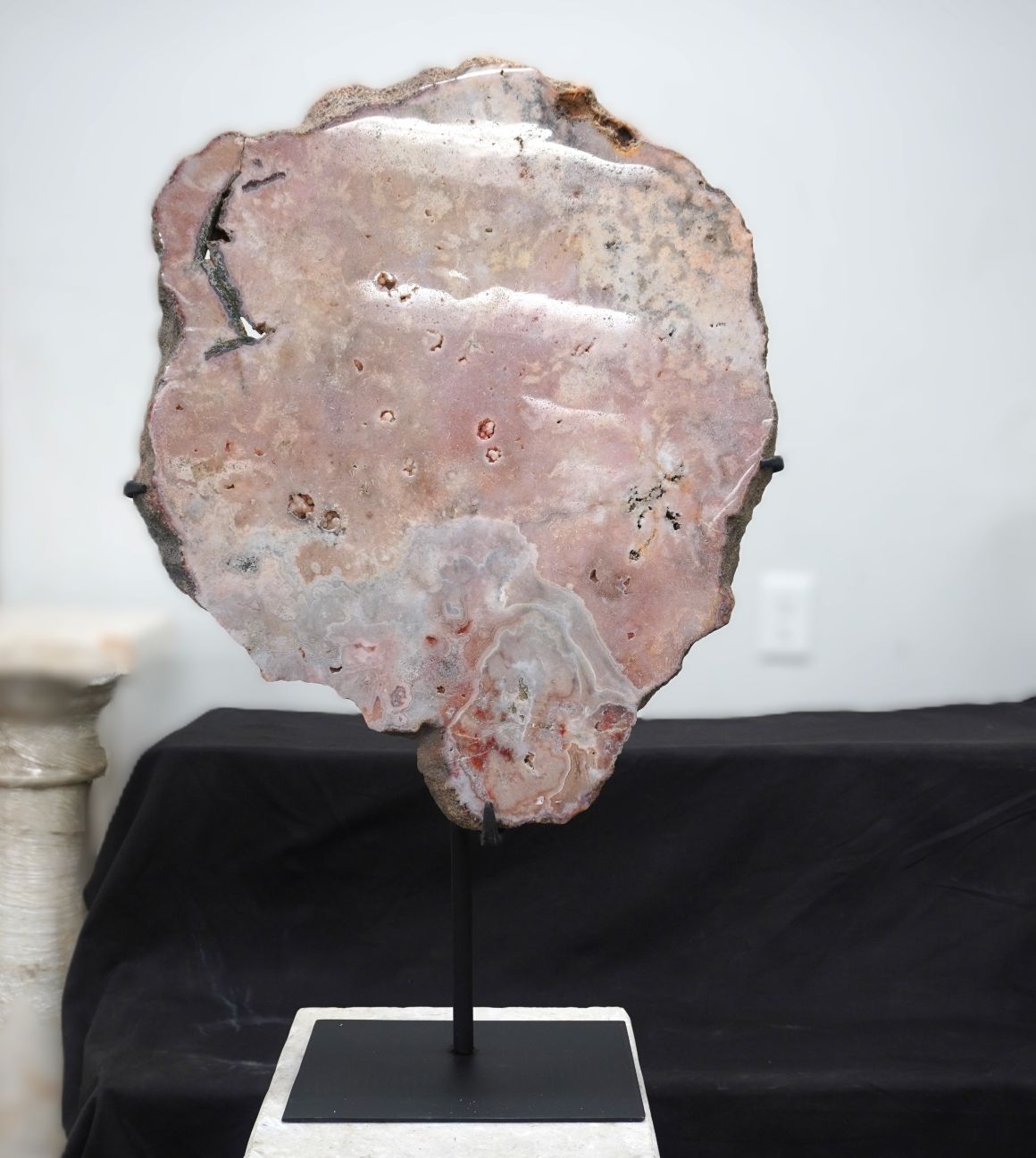 SPECIMEN – AMETHYST, PINK ON METAL STAND 30″H X 18″W