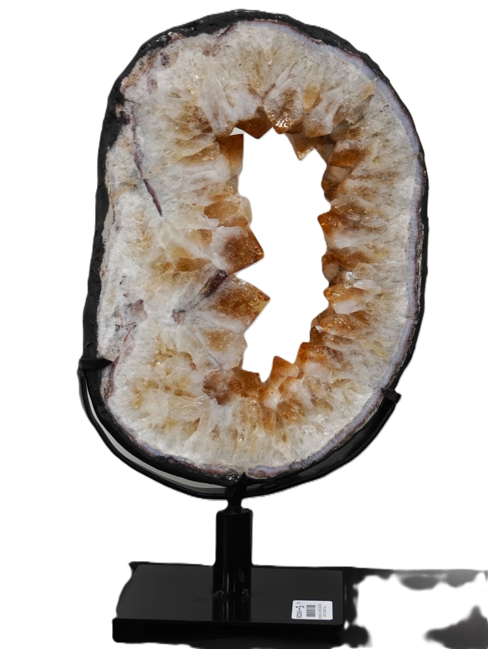 SPECIMEN – CITRINE RING ON METAL STAND 19.5″H X 11″W