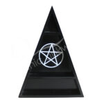 STONES DISPLAY – TRIANGLE WITH MOONS BLACK WOOD 10.75″W X 15″H