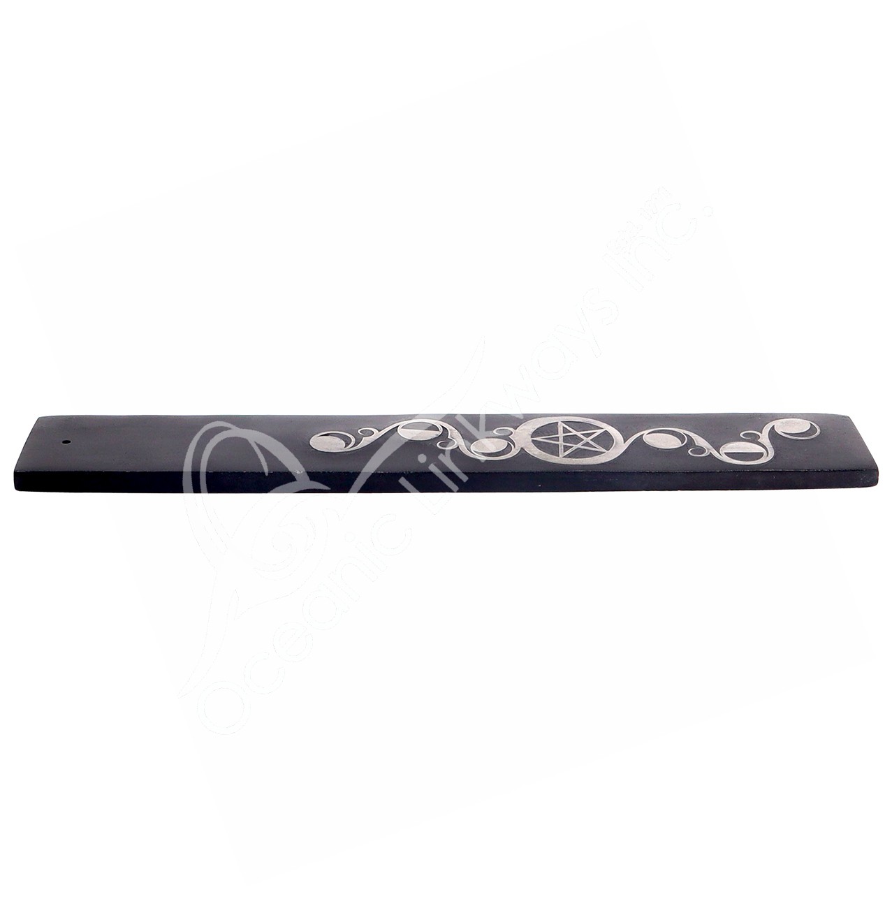 INCENSE HOLDER – SOAPSTONE, BLACK MOON PHASES & PENTACLE SILVER INLAY 10″L X 1.5″W