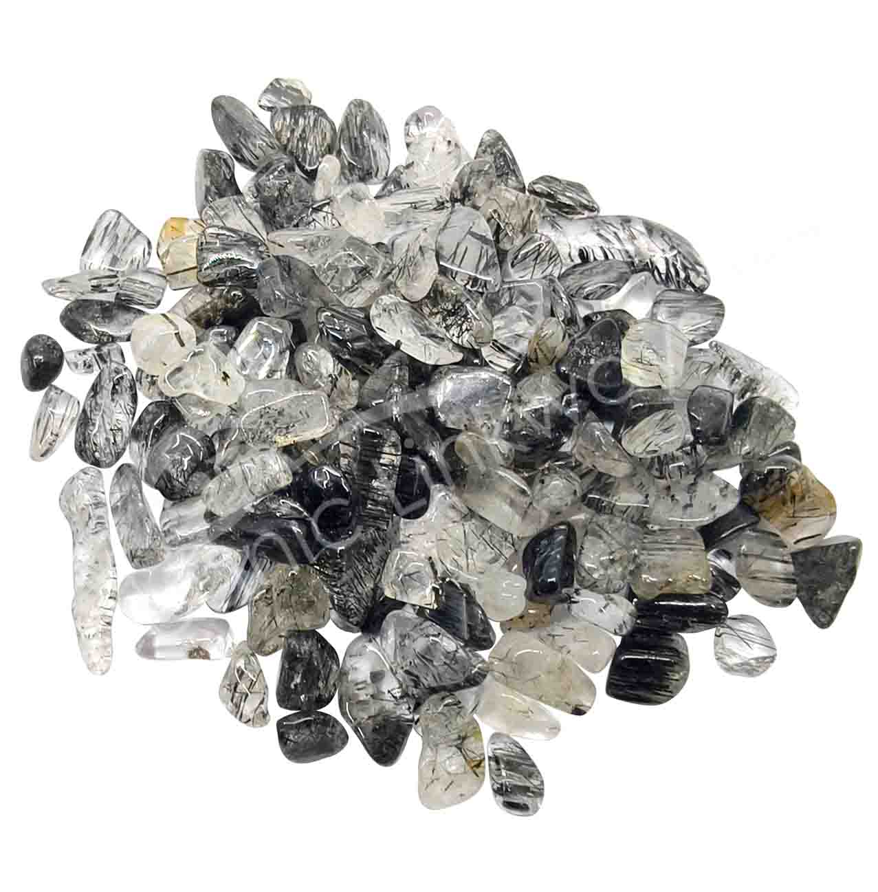 TUMBLED CHIPS – QUARTZ WITH BLACK TOURMALINE RUTILE EX 5-7 MM